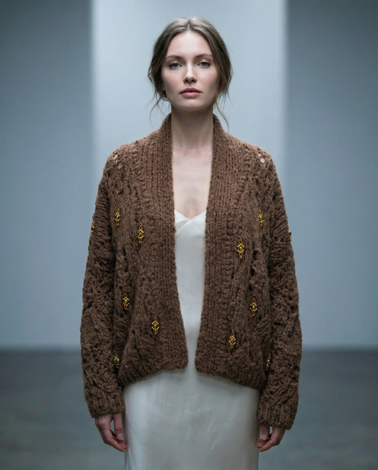 Handknit Cardigan with natural stones