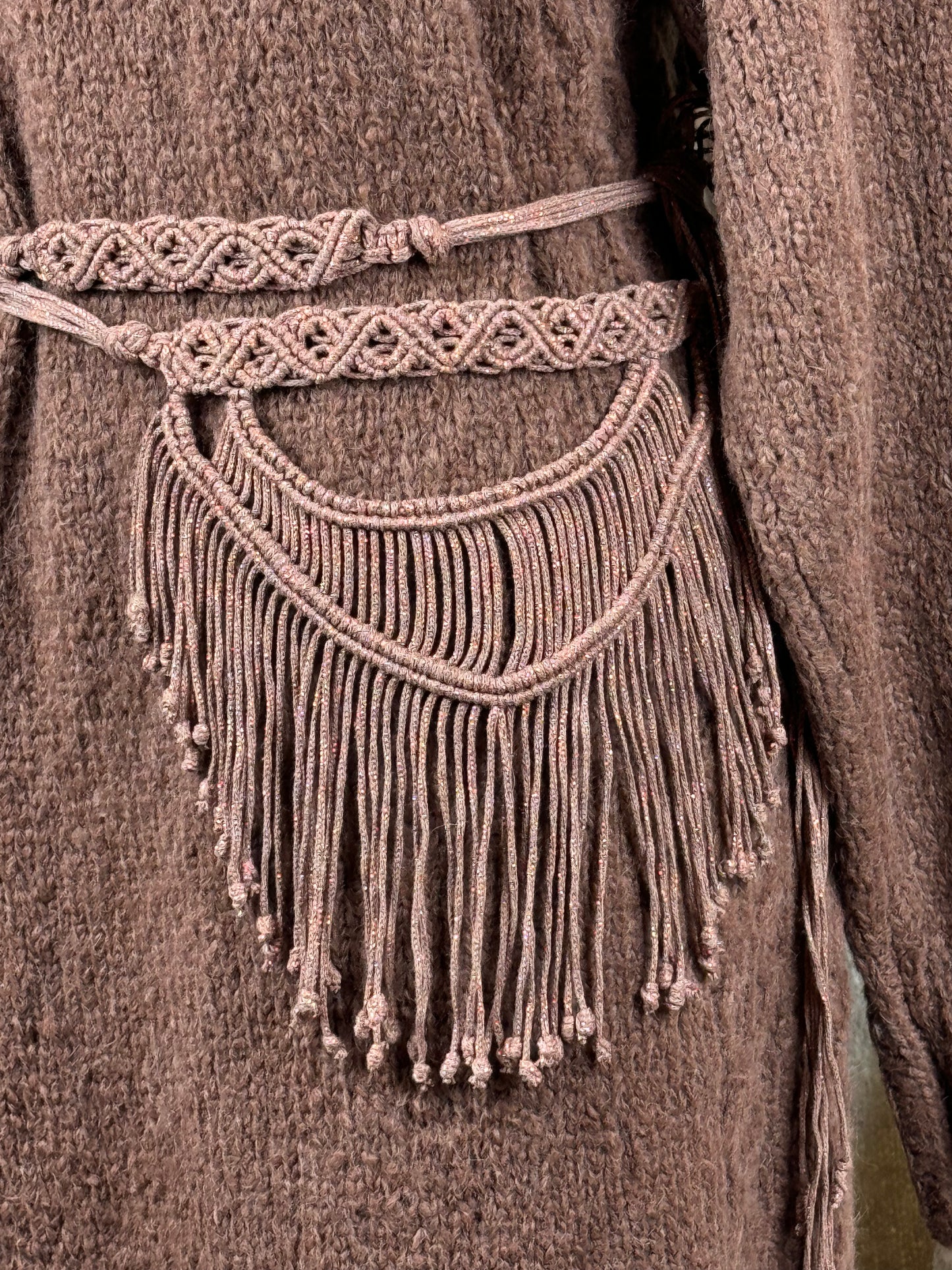Feel beautiful and unique wearing our Ethnic Long Dress with macrame belt. Its intricate knitted fabric creates a beautiful silhouette with the added detail of the macrame belt. This one-of-a-kind dress will have you feeling like a goddess.